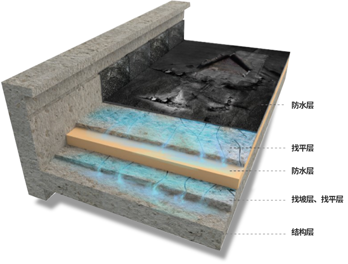 2. 構造層內容易積水、積水容易進行擴散滲漏;